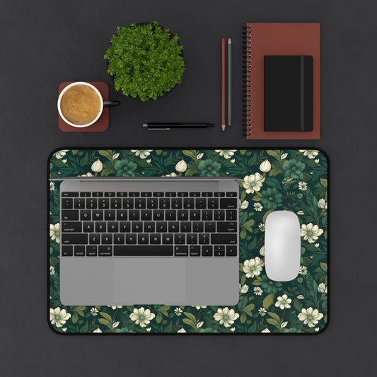 Blue Watercolor Floral Pattern, Non-Slip Desk Mat