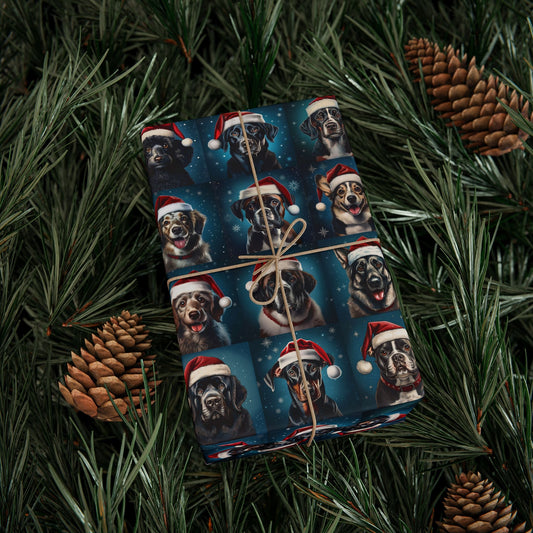 Christmas Dog Wrapping Papers, Santa Hat Holiday Gift Wrap, Dog Breed Pattern, Festive Canine Theme, Pet Lover Presents, Custom Printing
