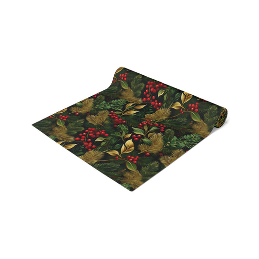 Christmas Table Runner Elegant Botanical Print, Festive Dining Decor, Cotton Poly Table Linen, Holiday Home Decoration, Kitchen Dining