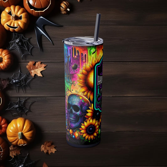 👻🕸️Spooky Vibes Skinny Tumbler with Straw, 20oz
