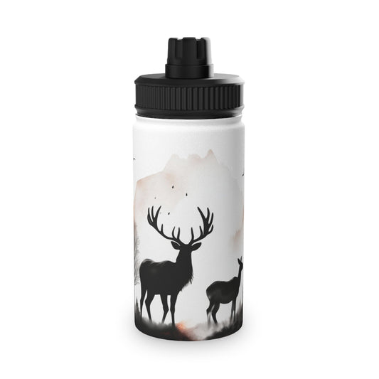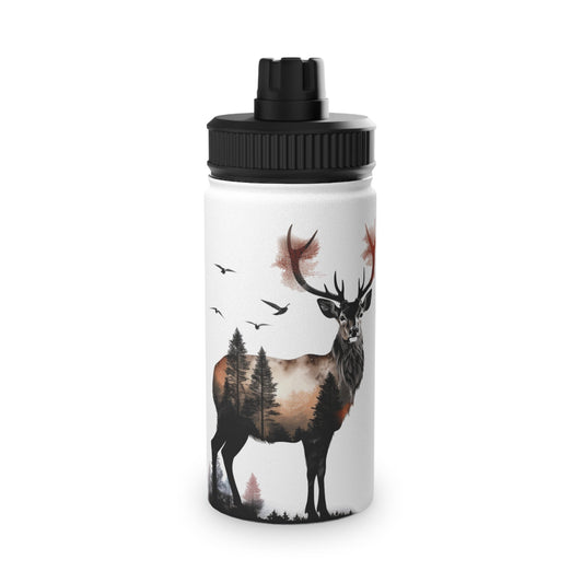 Stainless Steel Water Bottle, Sports Lid - Majestic Stag Forest Landscape Design