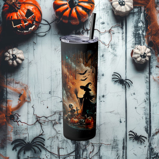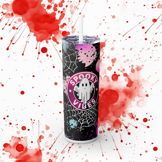 👻🕸️Spooky Vibes Skinny Tumbler with Straw, 20oz
