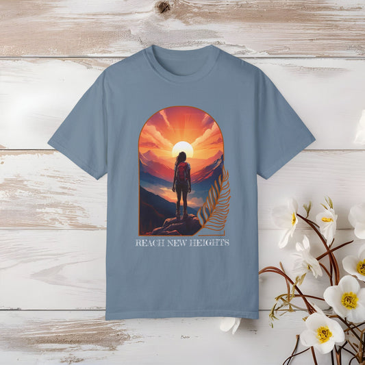 Mountain Explorer Graphic T-shirt, Adventure Nature Lover Tee, Reach New Heights Blue Shirt, Unisex Hiking Apparel, Outdoor Enthusiast Gift,