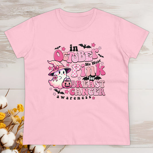 Boo-tiful Pink Ribbon Women's Midweight Cotton Tee