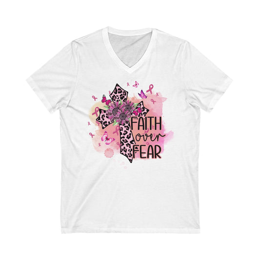 Faith Over Fear Unisex Jersey Short Sleeve V-Neck Tee